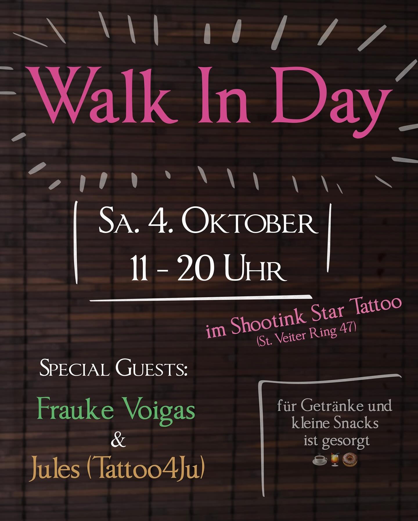Tätowieren ist ein privater Eingriff. Um es meinen Kund*innen so angenehm wie möglich zu machen, bleibt die Türe bei einem Termin geschlossen.